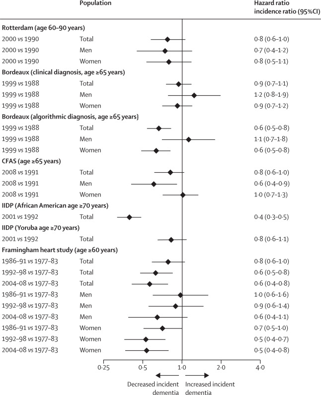 The number of older people, including those living with dementia, is rising, as younger age mortality declines. However, the age-specific incidence of dementia has fallen in many countries, probably because of improvements in education, nutrition, health care, and lifestyle changes. Overall, a growing body of evidence supports the nine potentially modifiable risk factors for dementia modelled by the 2017 Lancet Commission on dementia prevention, intervention, and care: less education, hypertension, hearing impairment, smoking, obesity, depression, physical inactivity, diabetes, and low social contact. We now add three more risk factors for dementia with newer, convincing evidence. These factors are excessive alcohol consumption, traumatic brain injury, and air pollution. We have completed new reviews and meta-analyses and incorporated these into an updated 12 risk factor life-course model of dementia prevention. Together the 12 modifiable risk factors account for around 40% of worldwide dementias, which consequently could theoretically be prevented or delayed. The potential for prevention is high and might be higher in low-income and middle-income countries (LMIC) where more dementias occur.