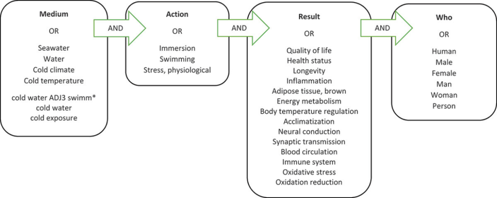 This review is based on a multiple database survey on published literature to determine the effects on health following voluntary exposure to cold-water immersion (CWI) in humans. After a filtering process 104 studies were regarded relevant. Many studies demonstrated significant effects of CWI on various physiological and biochemical parameters. Although some studies were based on established winter swimmers, many were performed on subjects with no previous winter swimming experience or in subjects not involving cold-water swimming, for example, CWI as a post-exercise treatment.
